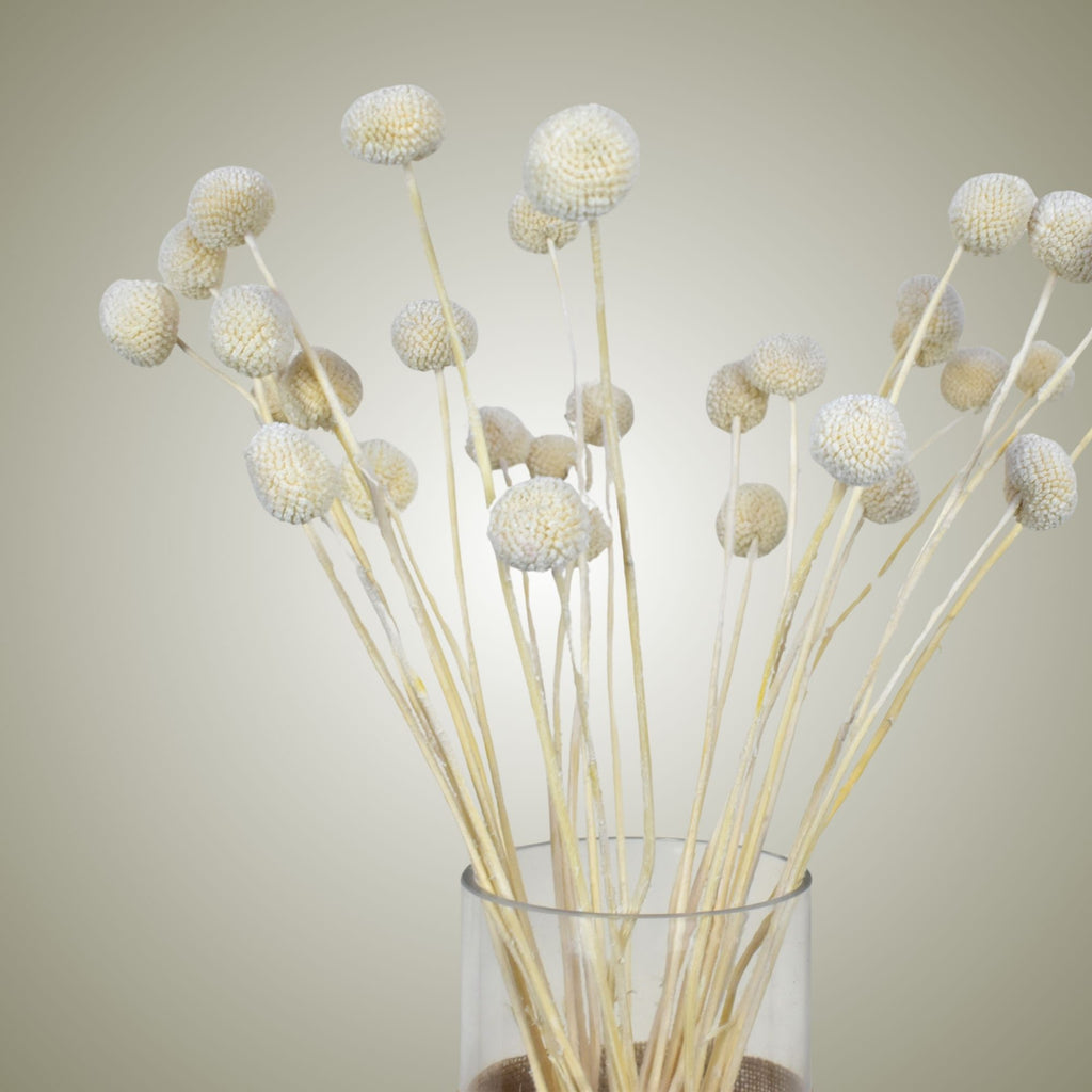 - Dried Craspedia: Playful, spherical blooms for a modern, minimalist look.