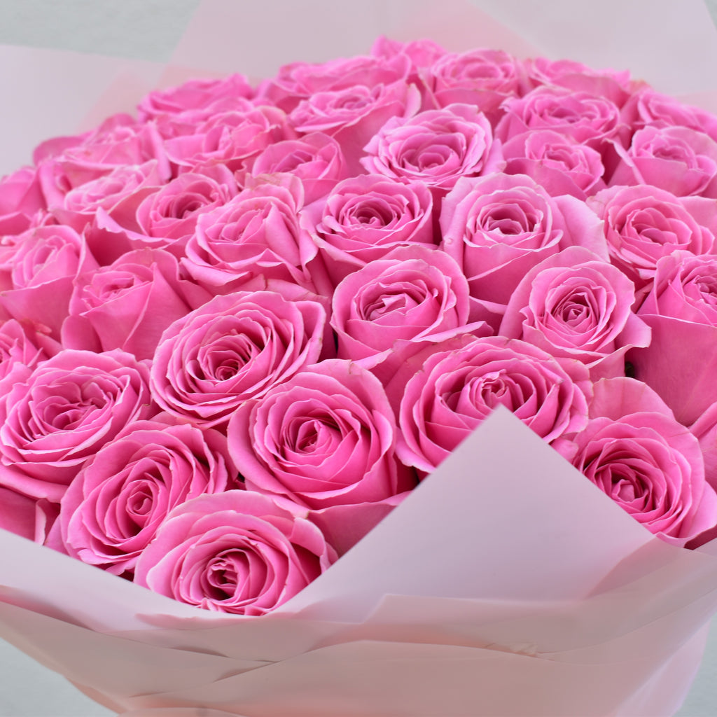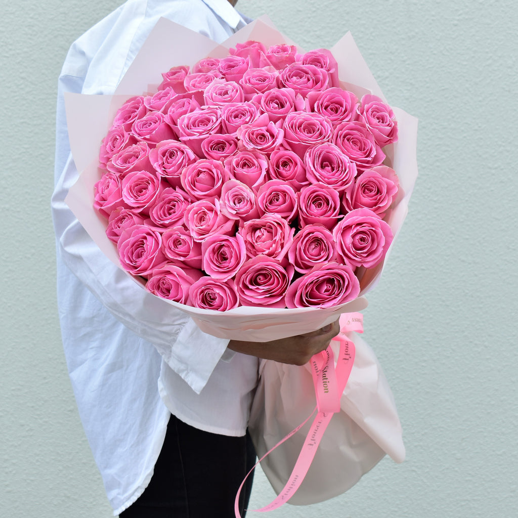 The Angel - Valentine's Special bouquet is a stunning arrangement of pink roses that will bring joy and beauty to any occasion. Each rose is carefully selected and arranged by our expert florists, and then wrapped in a delicate pink wrapper and finished with a pink ribbon. Whether you're celebrating a birthday, Valentines, or just want to brighten someone's day, the Angel bouquet is the perfect choice.Â