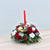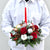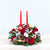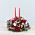 The centerpiece arrangement for Christmas, ideal for adorning a dining table, showcases a splendid blend of fresh Red Roses, Pine Cones, Cinnamon, Cotton, Hypericum Berries, and Festive Greenery, all artistically assembled in a tray for an eye-catching display. A candle is included to enhance the romantic ambiance. This exquisite arrangement is a wonderful way to convey love and passion to a cherished person on any special occasion.