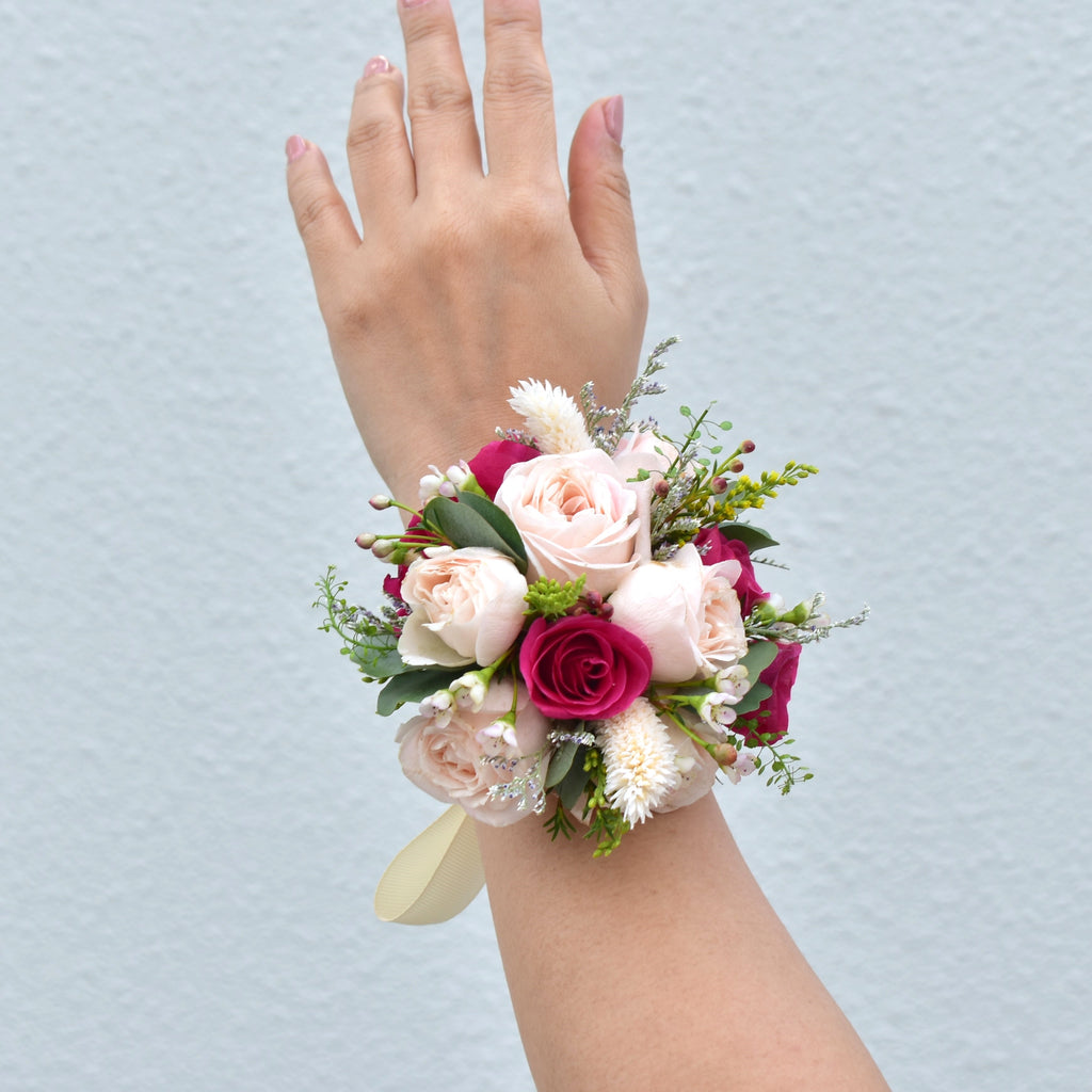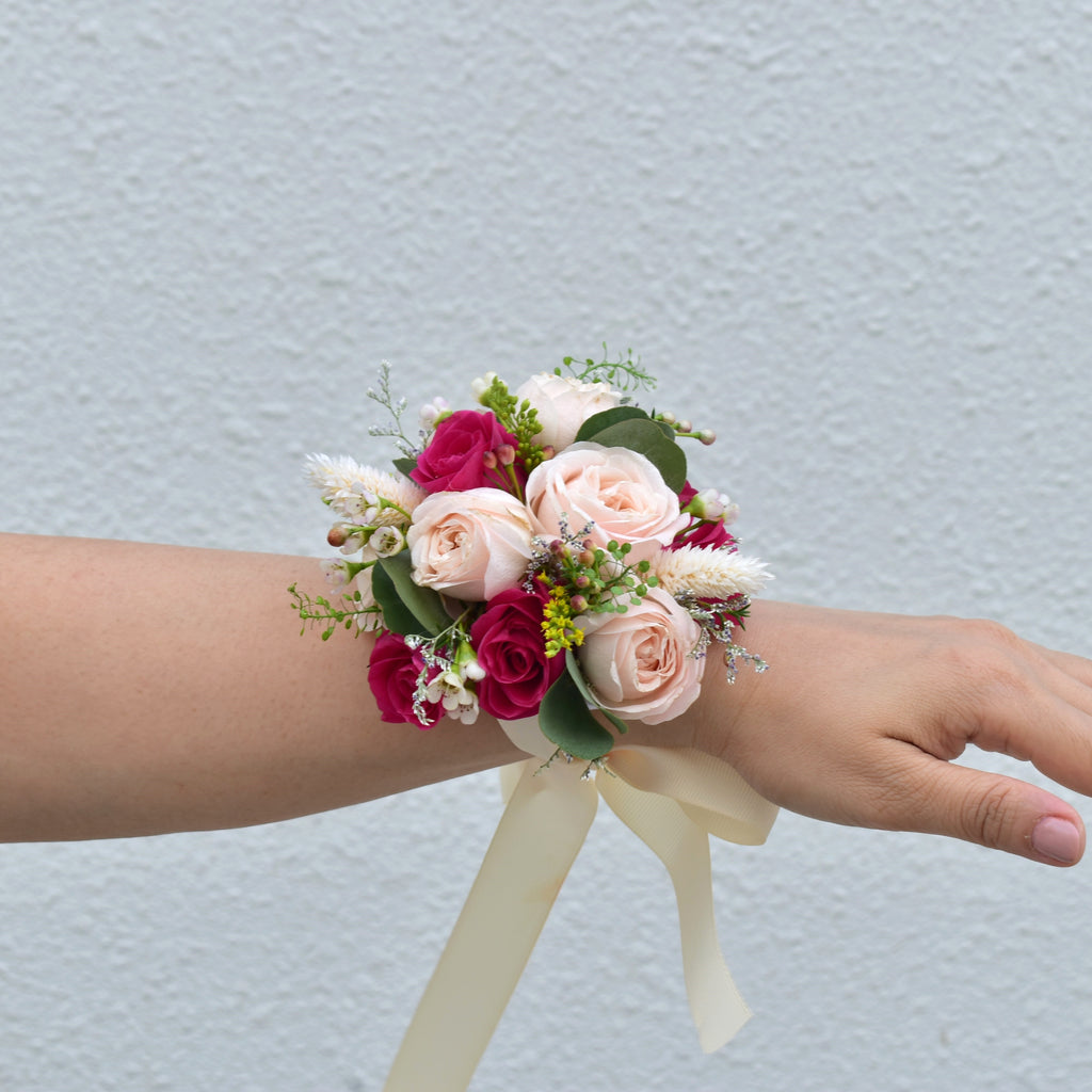 Expertly arranged and tied with a graceful ribbon, the "My Lady Corsage" ensures a secure and comfortable fit on the arm. Perfect for proms, weddings, or any formal event, this corsage is a timeless accessory that enhances your ensemble with its natural beauty and sophisticated design.